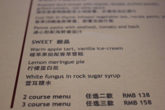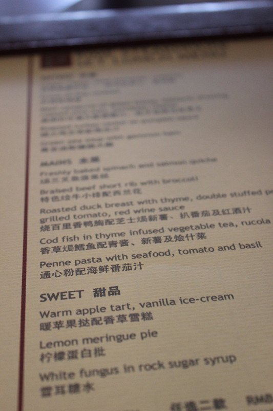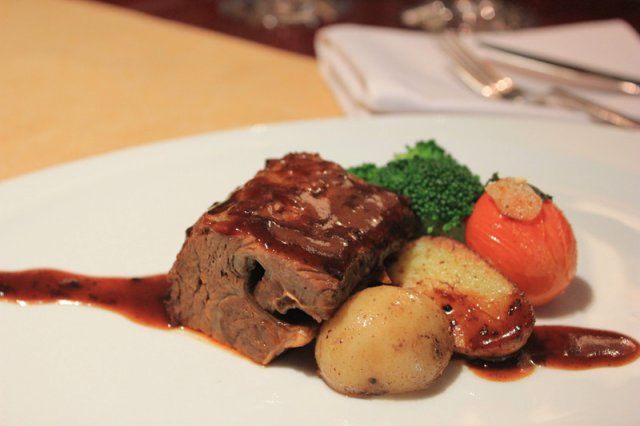 特色烩牛小排配西兰花:一道全熟的牛排。虽然我不怎么喜欢吃牛排,不过如果真的要吃牛排也比较喜欢七成熟的。牛扒对于中国人来说总是很尴尬,半生不熟的肉质鲜嫩,肉汁芳香,全熟的牛排往往又老又干,失去魅力。当这块肉汁溢出,大大块的全熟牛小排上桌的时候,我很担心牛肉老了。幸好烩出来的牛肉还是能够保证里面有丰富的肉汁,吃起来不干不硬,但是煮的太久的牛排加上卤汁,给我的感觉不像在吃牛排,而是在吃卤牛肉,而且是那种松软肉烂的卤牛肉,虽然味道十足,不过总有点可惜这么一款好肉。