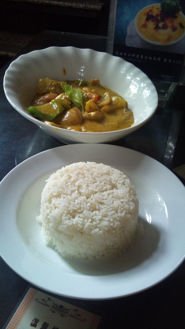 加左椰奶~同蛋清(应该)咖喱又滑又软,点上猪柳肉~