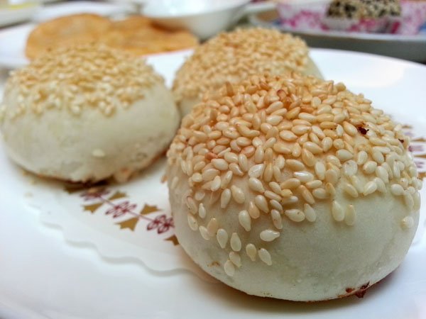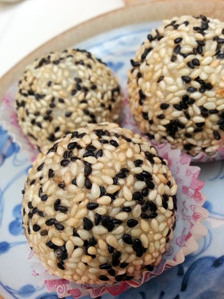 黑白麻沙煎堆:外层香浓软糯,里面是极富内涵的喷香芝麻馅,吃罢满嘴的幸福感。