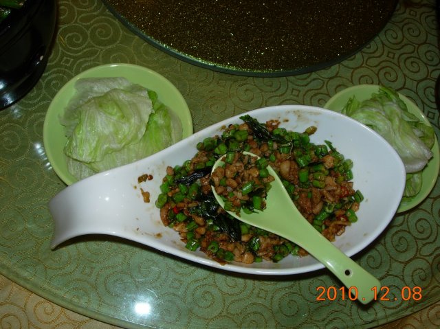 冬荫功汤酸辣味和浓度都适中,里面的虾又大只又新鲜。美中不足的是炉子下面没有点蜡烛加热,到最后的时候有点凉拉,我比较喜欢喝热乎乎的汤。