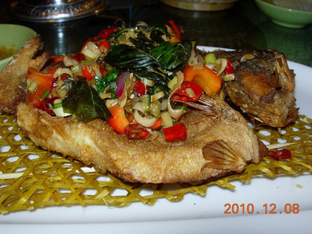 香芋竹烧富贵鱼:看上去卖相就很好,而且分量十足。大条的鱼炸得是外焦里嫩,面上铺满了辣椒、香叶等香料,吃起来真的好香又不失鲜美。