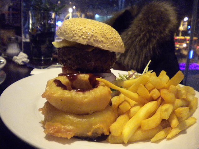 汉堡的套餐里标配是有薯条的,部分套餐才有洋葱圈
