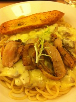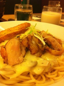 每次来到太古汇这里吃东西都会发现隔壁的店都是满满的人!只有意粉360是空空的!一个原因系意粉360不够出名,第二个原因系间店其实很大!顾客基本上都话坐进里面,而非外面。第一次去吃套餐白汁鸡肉意粉套餐!睇图片以为好少野,但是其实都吃得几饱!份量ok!白汁很浓郁,算是我吃的最香浓的一间了,鸡肉大大件无减料,兼且鸡肉好嫩滑~!只是意粉的心有点硬,不是煮不熟,是可能意粉自己的问题....个人口感要求不一啦,各位可以去试下,总体黎讲意粉系合格的!蘑菇忌廉汤,超好喝!香气飘溢啊~汤很浓稠,用料足!特别推荐的是焦糖炖蛋布丁!上面一层脆薄的焦糖,敲开是QQ的蛋布丁,布丁很滑口,不会太松散,吃在口中有种在舌尖上跳舞的感觉~~~哈哈哈哈哈哈哈~!