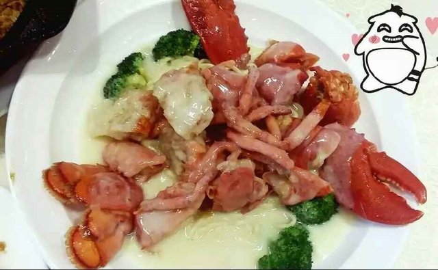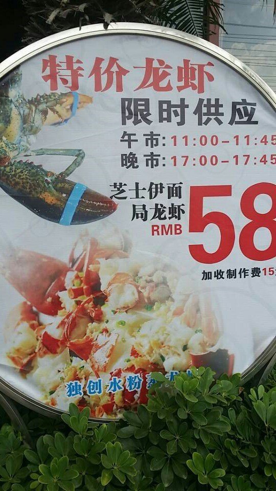 坐了一个多小时的车终于到了鹅公村~~对他本是满满的期待的~58元一斤的龙虾~要在11点45分之前下单才行~~甘进去的时候就感觉这里非常大~~不仅是室内还是室外,室外还有几个坐落在湖中的房间~感觉挺有特色的~~看起来这里的服务员挺多~但是好像就没几个干活的!!叫了十几遍才过来下单~~沏茶倒骨碟全是自己一手包办~真是自动化~~就连上菜也是服务员拿到跟前,然后自己放在桌子上的~~这里的出品也是很一般~~最为期待的芝士伊面焗龙虾~~特价的龙虾全是小小的~肉尝起来有点苦~~芝士味道不浓~~面也很一般~~分量很少~~感觉很失望!!