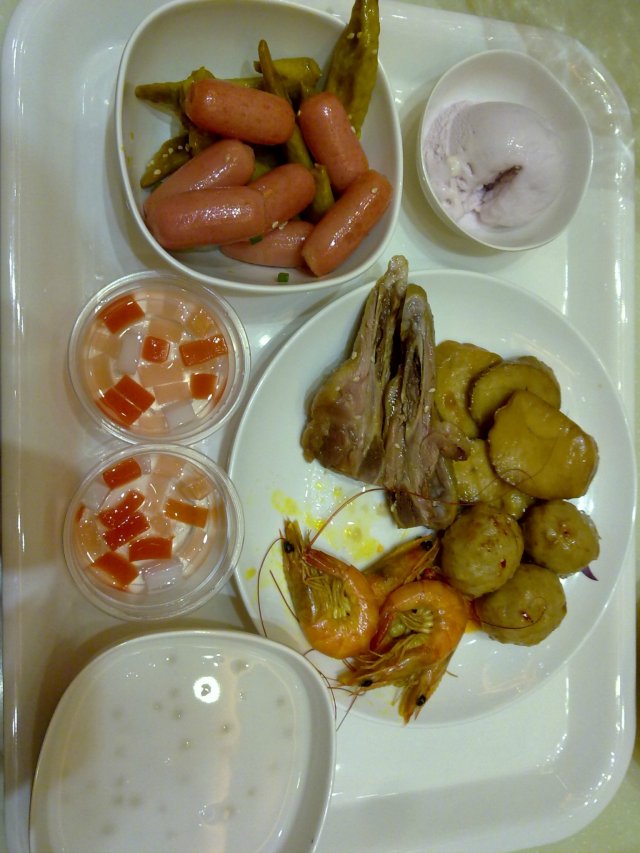 姐妹们约来凯乐会唱k,主要是距离住的地方挺近而且价格也便宜,周六日也是可以团购才是45块钱一个人,咩咩觉得美中不足就是自助餐的种类和食物有点少,自助餐厅也没很大,不过唱k的房间是不错,看在价格的份上,咩咩觉得还是对得起价格,来了好几次凯乐会的食物都吃了个便,尤其喜欢还是这里的麻辣烫,可以无限量的加东西进去然后有师傅就给你烫,不用自己制作也不用干等着,咩咩就是喜欢什么蔬菜都加进去一大盘,吃了一碗酒足够了懒得再出来拿一次,人多的时候等着也是挺累,今天人数有七八个大家拿的东西都差不多相同,今天难得有咩咩喜欢的马蹄,咩咩老家是这个叫的,可以煮汤可以直接吃,清甜清甜的爽脆,这里稍微的煮了下,味道很好拿了好几碟,然后有波波肠可以无限拿,不喜欢凯乐会的雪糕,一次拿一个只能一个球,这个雪糕冰的非常硬。西米露加了黑白两色凉粉用了椰汁好吃。