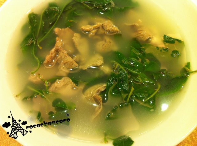 鲜猪杂菜汤9元/位,先点一位试试。猪杂主要是肝最多,隐约能见到猪肠,配上枸杞叶略略灼熟,可惜口感还是太老,反而枸杞叶非常滑嫩。