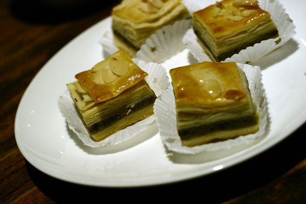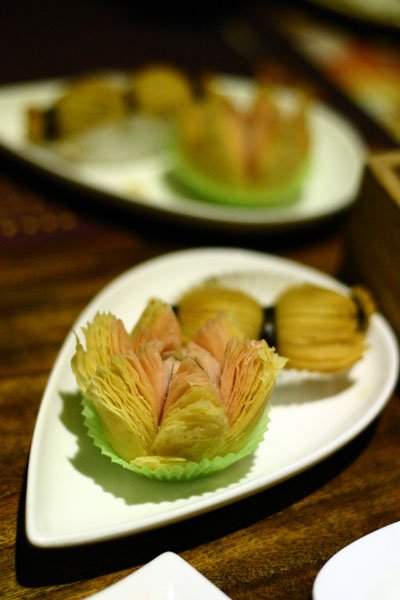 小店的装修古朴雅致,出品造型与其搭配相得益鄣,看得出是花了不少心思,出品可圈可点。招牌多以酥类像生出品为主,其中又以“开花结果”最为代表,实为双拼“水沐莲花酥”及“藕断丝连酥”,无论其形或是意境,均风雅韵味,喻意呈详。不足之处,“水沐莲花酥”中的莲蓉馅料过硬偏甜,犹不及“藕断丝连酥”清新讨喜。