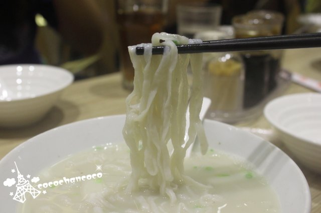 鱼面的出现HOLD住全场,那种惊艳不能置信那就是鱼面。将鱼肉起出做成鱼饼,再用刀切成鱼面,每一条都切得大小均匀,堪比机器。面质比一般面条更有弹性和嚼劲。转眼间一碗鱼面只见碗底。