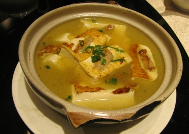 鸡汁煎酿水鬼重 实际是用猪肉醸山水豆腐,然后慢火煎煎,再用鸡汤来煮。