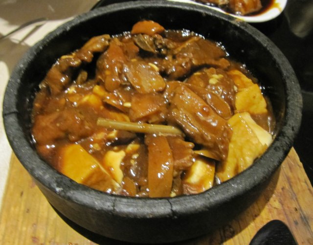 老姜鸭汁水鬼重 上面是鸭肉,下面是豆腐,酱汁较浓。