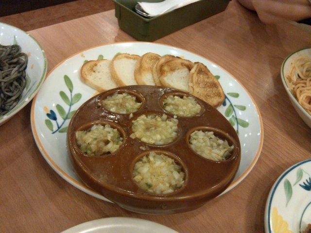 蜗牛配面包,法式蜗牛,加上洋葱,蒜,一起烤。