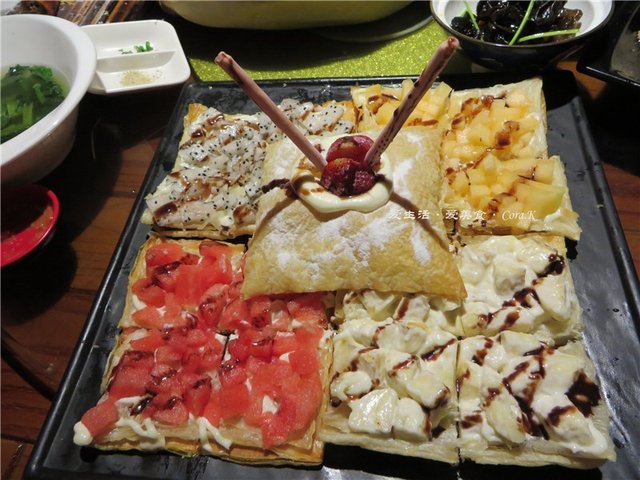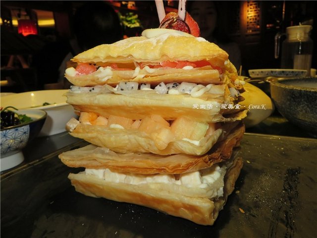 加勒比海盗,好吧,我承认我玄幻了,鲜果拿破仑么……卖相尚可,不过我一直想不通的是,让服务员去帮忙切开,回来怎么变成这模样了?纠结……好在这拿破仑的口感还不错,酥脆,只是在这么浓郁的中式风情环境里,和着一堆中菜吃着非常西式的拿破仑呃……