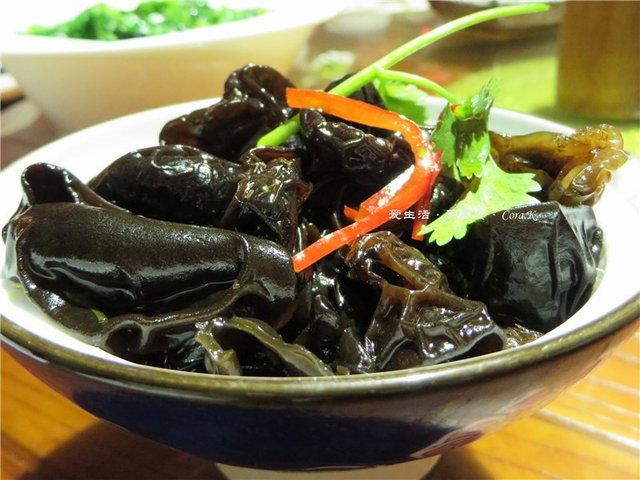 芥末捞云耳,开胃小菜,芥末与云耳也能碰撞出激烈的火花,让人有流泪的冲动。
