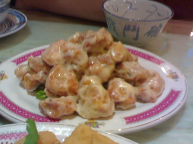 沙拉骨40多元,是将肉排油炸过,淋上沙拉酱,排骨吃起来酸甜可口。