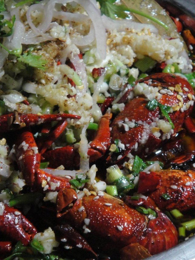 水煮香辣龙虾:不要以为辣味会盖住小龙虾的鲜味,厨师将特别调制过的香料和辣椒烹煮龙虾,单是香味已让人欲罢不能了,味道不用多说,鲜辣滋味,一人来上两斤也不解馋。