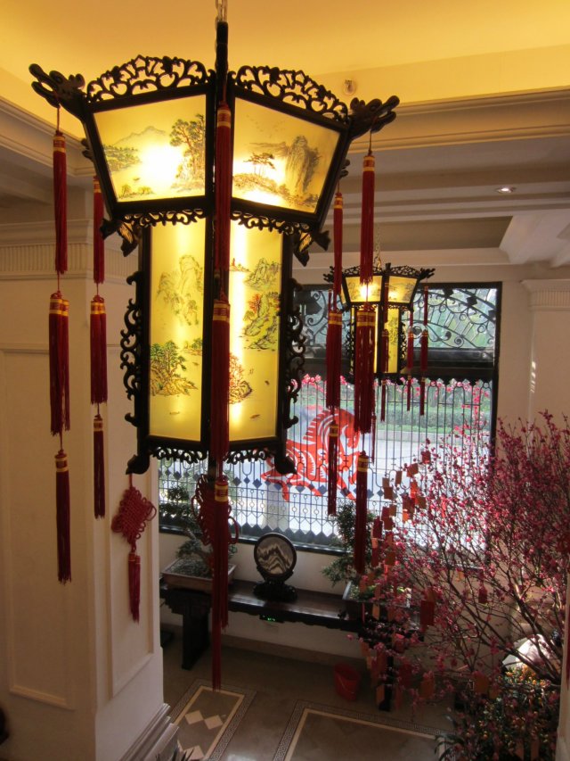 装修很古色古香,还高端大气上档次,新年了所以店内装饰都红当当非常喜庆,马形剪纸、大桃花、大吉、中国结等等。