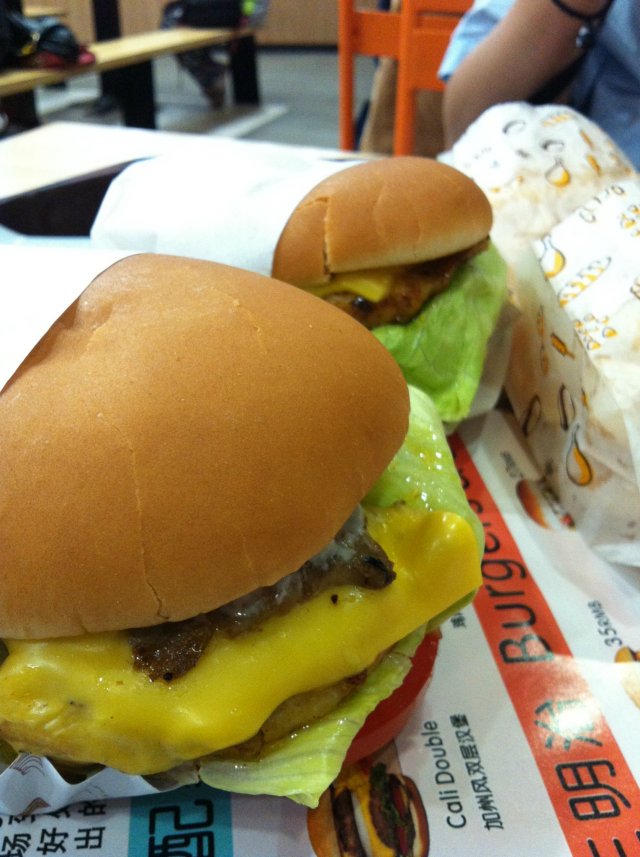 汉堡有墨西哥鸡肉和蘑菇鸡肉两种选择,我们两个都要了蘑菇鸡肉。