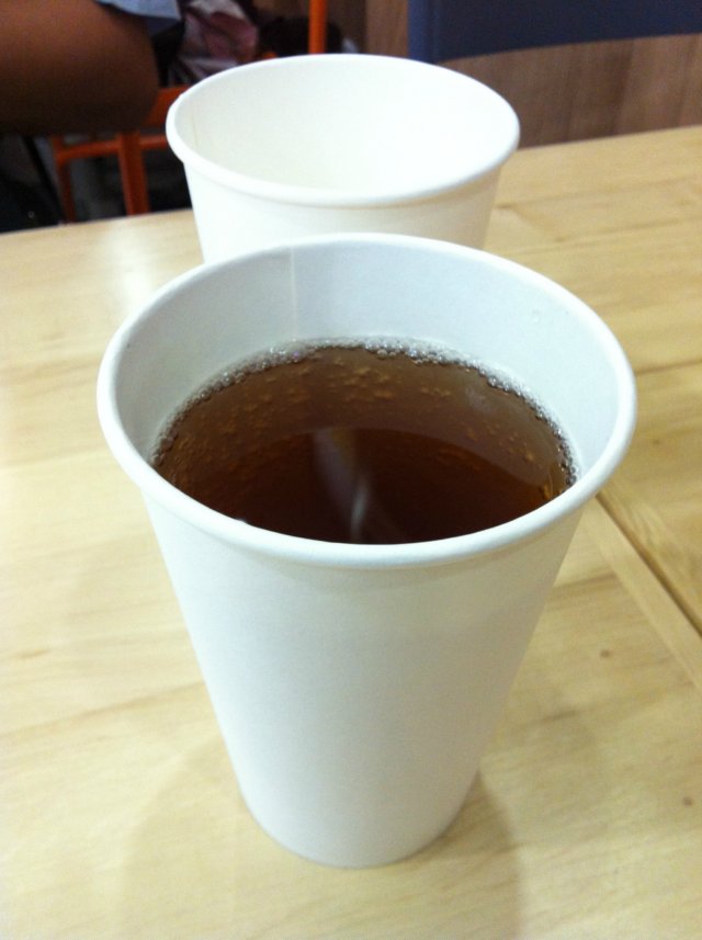 验证完点餐完,店员就给了一个号码牌和两个杯子。饮料是畅饮的,随便喝。哈哈。