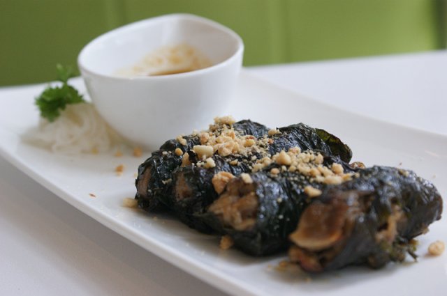 槟榔叶卷肥牛:胡椒叶是槟榔家族之一,以其叶做肥牛卷取其独特香味,乃越南驰名“牛肉七味”其中一味。呢个卖相可能都5系好好,但系牛肉卷爆汁加上独特噶配料,味道好好,就系牛肉火候过左少少,稍有D老,但系味道值得一赞~