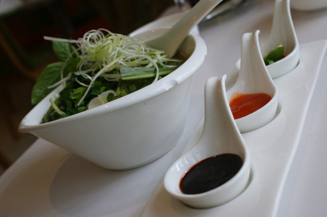 河内生牛肉粉:汤河粉在越南南、北有不同的差异,以越北的河内汤河粉最为正宗,是海外最为人所熟悉的越南菜式之一,亦是越南海内外所标纤的“越南美食”。呢个系介绍,香料类配菜好多,就得几块牛肉~不过牛肉噶口感同味道都5错,粉噶味道都5错,比想象中好。