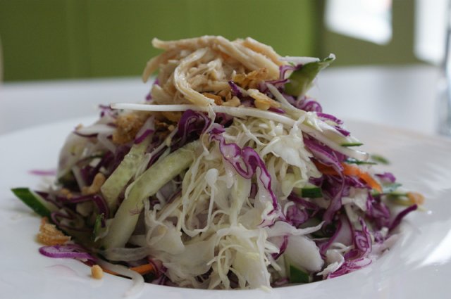 西贡牙车快:传统的西贡沙拉,由鸡丝,椰菜等多种新鲜蔬菜及香草配以鱼露沙拉汁,甜美香嫩,健康开胃,令人无法抗拒。 鱼露味好浓~呢个沙拉比较清新香甜~5错