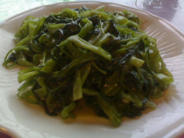 炒通心菜,这个菜卖相不好,虽然很多,但是很咸。