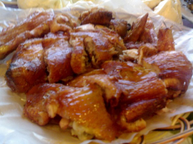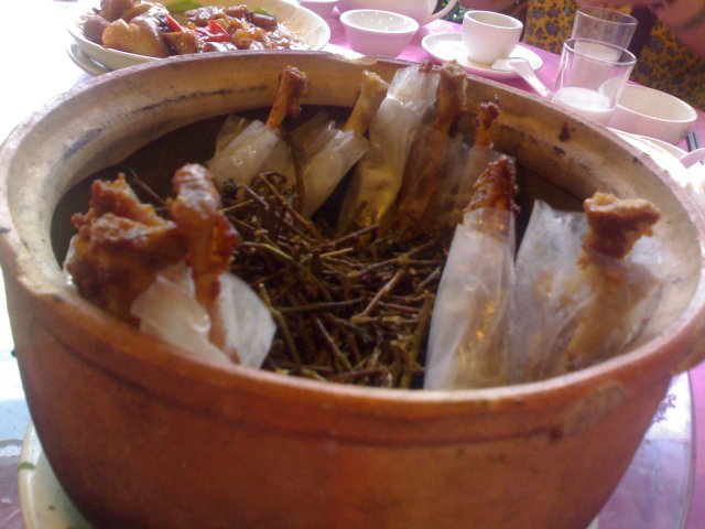 重头戏最后上来,烧鸡48元一只,据说是用荔枝木烧纸的,鸡很嫩很滑,吃起来鸡皮很脆很香,但是鸡切的很大块。