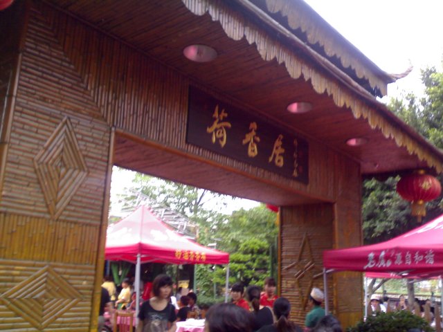 今日的荷香居,却是今非昔比,虽然它的竹棚的餐厅没有改变,但是四周建了几个大小荷塘,虽然现在不是荷花盛开的季节,但是荷塘上荷叶茂盛,不是给炎热的餐厅带来阵阵凉风。