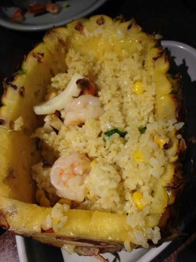 要说到越南菜~广州人最爱大头虾了~几乎无人不知~这店每日都是人山人海的~外国友人也极爱这店··~外边看来这店就觉得极具异国风情了·~~店内装修得也十分雅致,有格调··进去感觉十分宽敞舒服~空气有淡淡的香薰味~十分迷人~~店员十分nice~~说话很温柔~~热情向我们介绍店内特色菜品和招牌菜~说得很细致~我最爱这里的菠萝炒饭了~~分量还可以~~这个菠萝装满满的~虾仁很大只~很香甜~米饭很入味~除了有淡淡的菠萝味道还有虾仁的海鲜味!不错!!好吃!