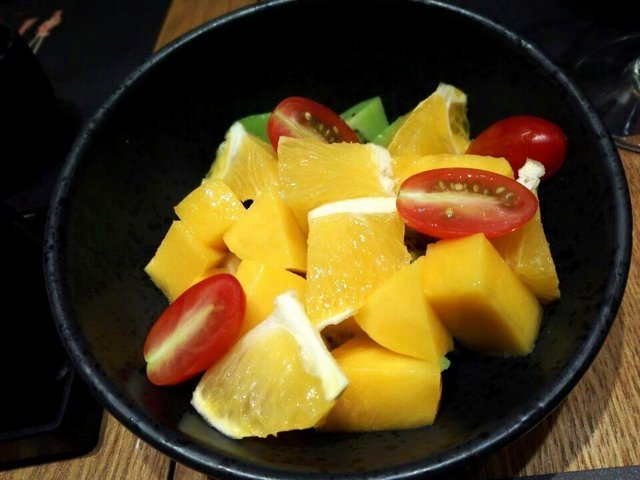 先来一个水果沙拉,可以讲是小盆友的最爱,当季水果新鲜且色彩丰富,夏天就该如此~芒果、圣女果、橙子、奇异果、香蕉加上清新的柚子沙拉酱,味蕾是彻底打开了~~