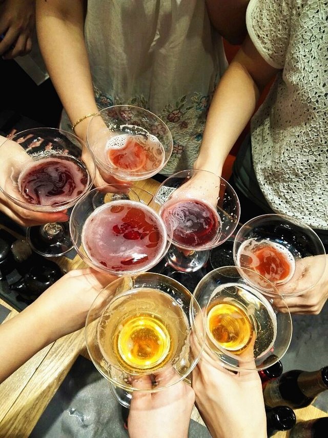感觉就是我们倒得没有技术。。。。。杯杯都是泡沫在面,而且发觉山楂、蓝莓、樱桃、玫瑰原来都是一家亲喔!!不理了,未开吃之前来一句“饮胜!!!”