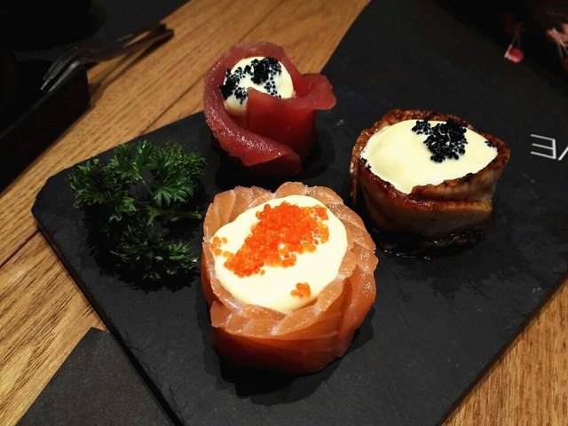 黑玫瑰、火玫瑰、红玫瑰。造型有些美感不足。三种小盆友最爱吞拿鱼的,没有筋,一啖入口,鲜~