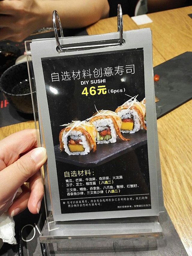 下面上上自选寿司的价钱与能选择的配料款式,及怎样能命名寿司。