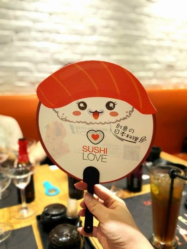 只要来消费,每围台都送一把的萌哒哒扇子,这只寿司是sushi love的吉祥物不??扇子扇风很大喔,质地不错~