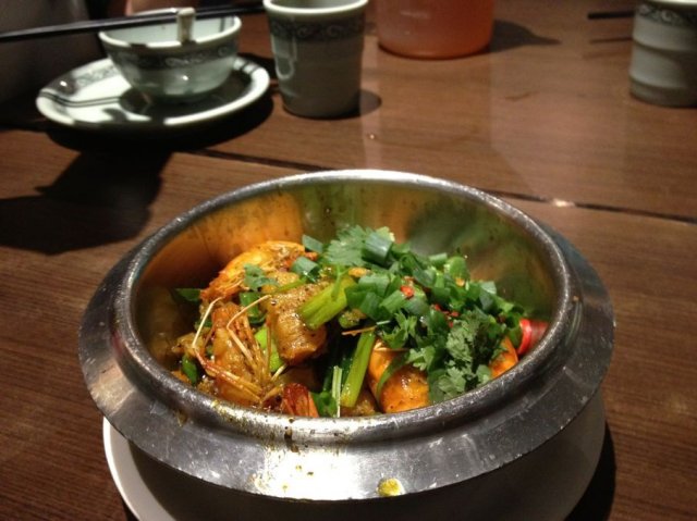 朋友强烈推荐的几个菜很正点,香烧猪颈肉,麻油鸡,还有椒盐虾球,都是超好吃,要飞起来的感觉。一盘菜上来哗的一下就见底了。一开始我们还耐着性子拍照,到后边已经顾不得拍照了,一道菜上来就起筷的。