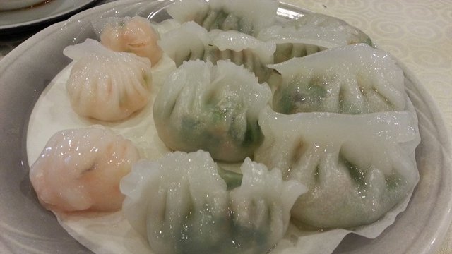鲜虾饺、香茜饺、潮州粉菓三拼盘(28一例):饺子各个都非常饱满,三个都是用水晶皮包的。首先说说鲜虾饺,里面的虾仁非常大粒,吃到口中啖啖肉。香茜饺这个里面的香茜多,味道个人觉得还行。潮州粉菓朋友说一般般。