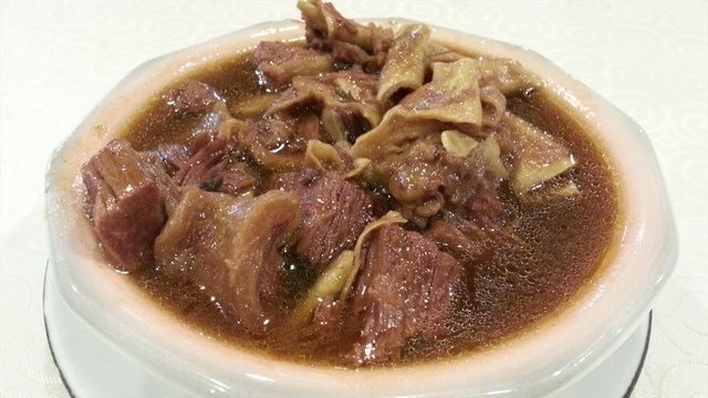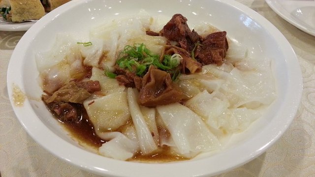 牛腩陈村粉(16元):这个碟头非常大,粉的分量足,上面的牛腩就几块而已,牛腩汁稍微少了点,粉黏在一块,吃起来还行,牛腩炆的不错。