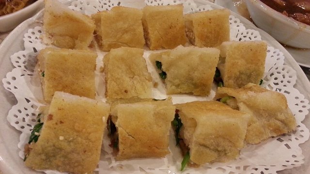 鸳鸯薄撑(28元一例):这个基本每次来都必点的,薄撑弄成一个三角型的形状,外面的薄撑金黄金黄,吃起来非常香口,里面的馅料也非常足。甜薄撑里面有的花生碎、椰丝。咸薄撑里面有韭菜、虾干。