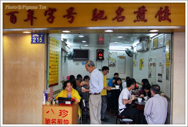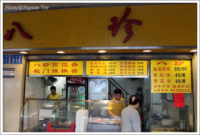 当年由于铺面细小,煎炉设置于街旁,每次都是几十只的饺子一起煎,但凡经过门前都会闻到四溢的香气,比较有特色的是那条长长的走廊,十几人坐在一起吃,夏天有时会吃得汗流浃背,但还是吃得很过瘾。虽然新店现在的卫生条件比以前好,堂吃也用上了一次性餐具(这让人觉得有点讨厌),但我还是喜欢坐在走廊里吃的感觉,往事总是令人回味。