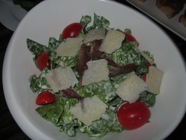 凯撒沙拉:意大利鳀鱼和奶酪,意大利鳀鱼很薄很薄带有咸味,芝士粒和生菜夹着一起吃,别有一番滋味。