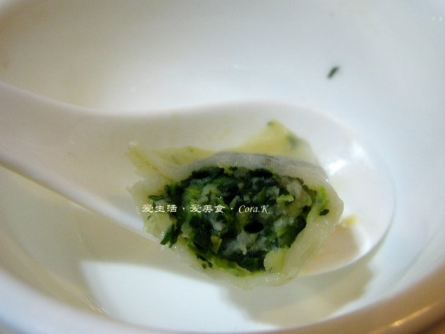 翡翠鲜肉蒸饺用的菜似乎是荠菜,只是不敢肯定,与蔬菜大包的馅不是同一种味道,个人比较喜欢这种菜馅,如果,皮不是那么粘牙的话,我几乎都要推荐了。