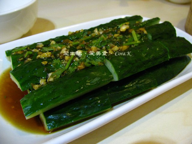 原本菜式中的凉拌莴笋换成了凉拌青瓜,而且是两碟!我那叫一个囧啊,毫不客气的说,我自己做的拍青瓜可比这好吃多了,这青瓜完全不入味,除了蒜泥味之外一点都不香,呃,不过忘了说,他们家做的不是拍青瓜,而是就这么切成小块摆盘淋上调味料上桌的凉拌青瓜,不满意,不推荐。