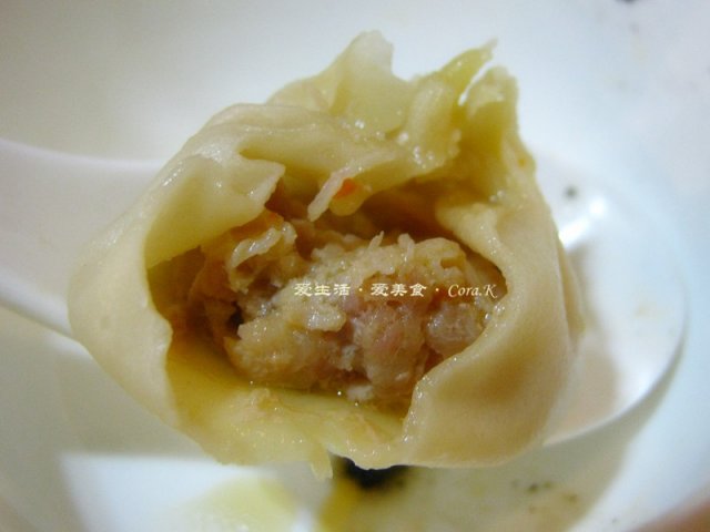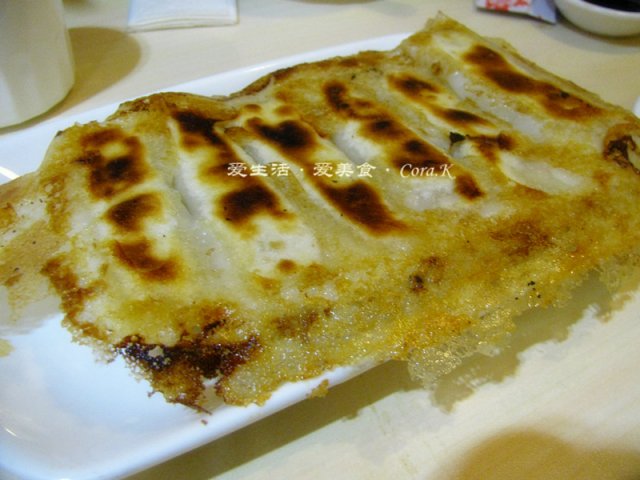 招牌韭黄锅贴是在我们准备离场的时候上来的,说实话,吃过腾元生煎后再吃这个,立分高下,或许因为赶着煎出来,边缘部分我夹的那块还有一小块地方是湿面粉,也就是未熟透,馅内有汁,韭黄味不够香,皮稍厚,表面那层倒成了最好吃的部位了。