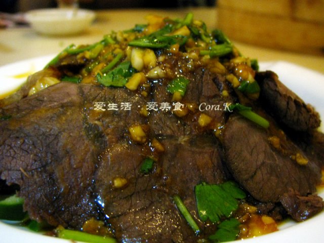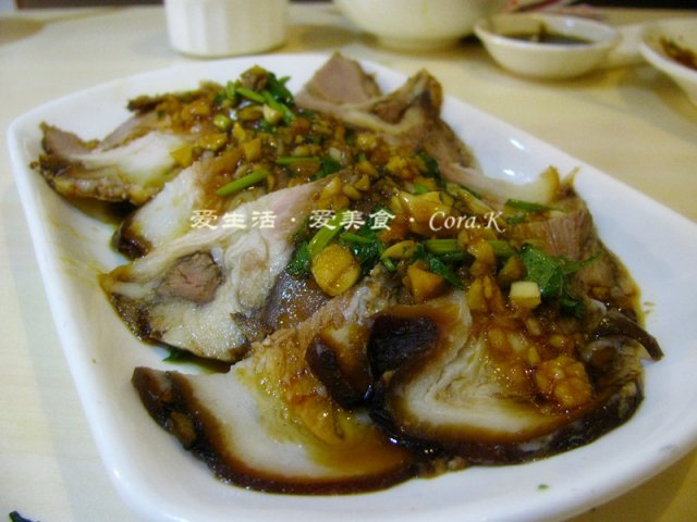 招牌精卤牛腱肉的卖相还可以,分量却稍嫌少了些,只有最上面的一圈一层,下面全是青瓜丝,唉唉唉……怎么又是青瓜?佐料还是蒜泥,今晚的杀菌效果够了,口气,不美妙了,牛腱肉的口感稍嫌硬了些,而且还是绝对的冰冻,无甚牛肉香,一般。