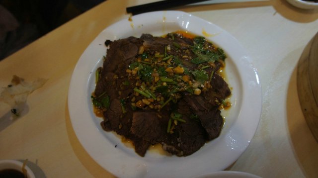 招牌精卤牛腱肉感觉还可以~上面一层是牛肉,下面又是青瓜~旁边很多蒜泥。。。