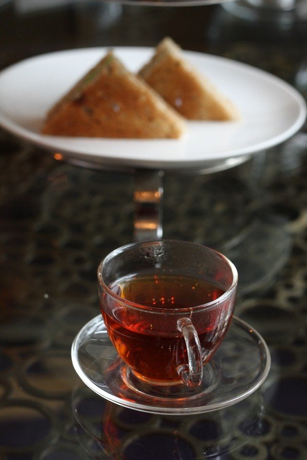 然后再往前走到希尔顿•••来得比较早。酝聚酒廊还没什么人,但是吧台的穿旗袍的MM(没看错••真的是吧台里穿旗袍的MM~~)就很热情地接待了我们~~这个下午茶套餐原价是98元+15%服务费•••有一个三层英式下午茶盘子,还有咖啡或者自制茶两杯•••如果选择的是茶就有多种选择,而且是每人一壶~~~可以够有空闲的人聊好久了~~如果选择的是咖啡就只有一种现磨咖啡~