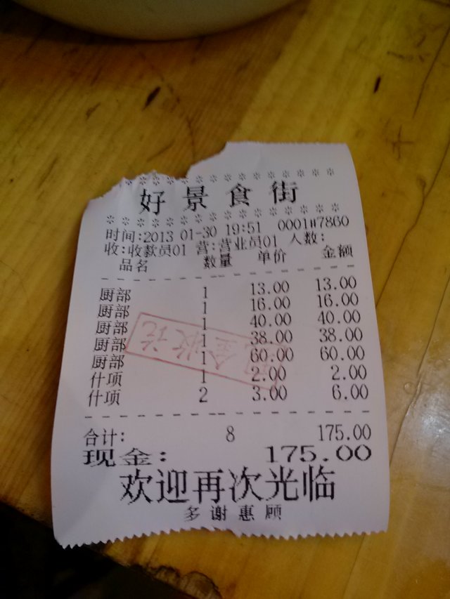 我地要咗半只鸡(38元)加两斤(30元/斤)脆肉皖,如果加其他嘢就可以叫半只鸡点了一份鲜虾粥,另外加一份青菜13元,一份面筋16元