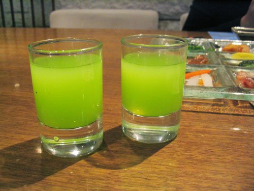 两小杯像果汁的饮料,不错,酸酸甜甜~!
