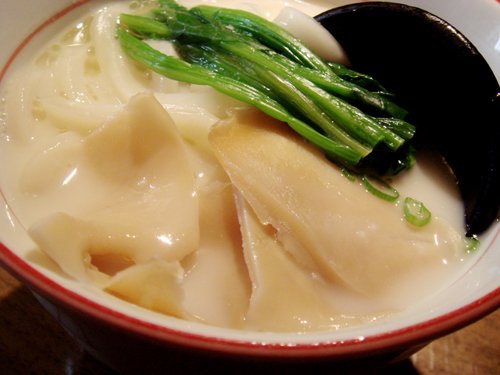 鲍鱼手打乌冬,,呢个系我地一直最赞同的一道菜,,比和牛仲好食,,完全系因为个汤底,,好鲜味,,鲜味到完全唔洗再加D咩,,简简单单的鲍鱼片加两条青菜,,但真系好好食咯..而且D乌冬都好爽的..呢个菜原价唔知几钱呢??有机会绝对会再去一试的..就冲住呢碗鲍鱼乌冬..