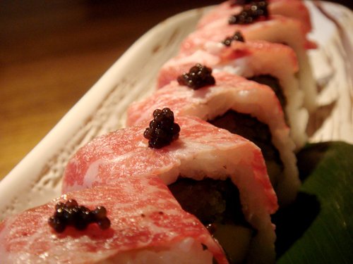 鹅肝铁板薄烧,,比较后先上的一道菜,,而且系我地食完碗鲜味乌冬之后上的,,所以完全失色了..先入为主认为鲍鱼乌冬好食当然系其中一个因素,,另外一个因素就系呢道菜太油太肥腻了,,鹅肝搭配肥牛,,仲要系铁板烧,,谂下都觉得肥,,哈哈..另外,,如果有可能的话,,尽量唔好食鹅肝呢D甘残忍的菜了,,我地应该提倡唔好"酷食"的..此说纪晓岚的《阅微草堂笔记》里面都有提倡过..中意酷食的人,,最后会死得好有报应的..因此宜家睇到微博里面有讲果D生取熊胆汁,,养鹅取肝等等,,我相信距地最终都会得到类似的报应的..只不过系时间问题而已..